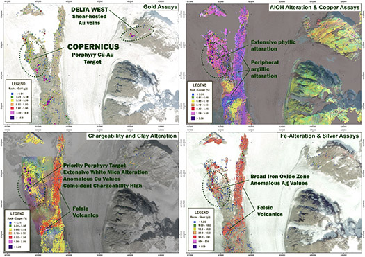 Figure 3. Plan Map - Copernicus Zone and Delta West Drill Targets & Multispectral SWIR Imagery